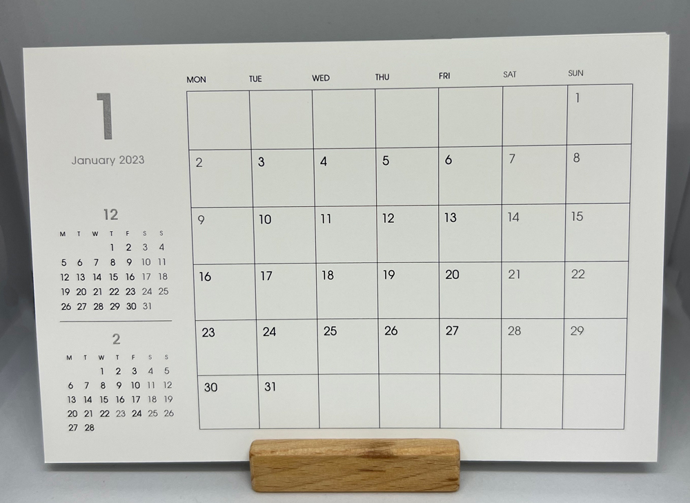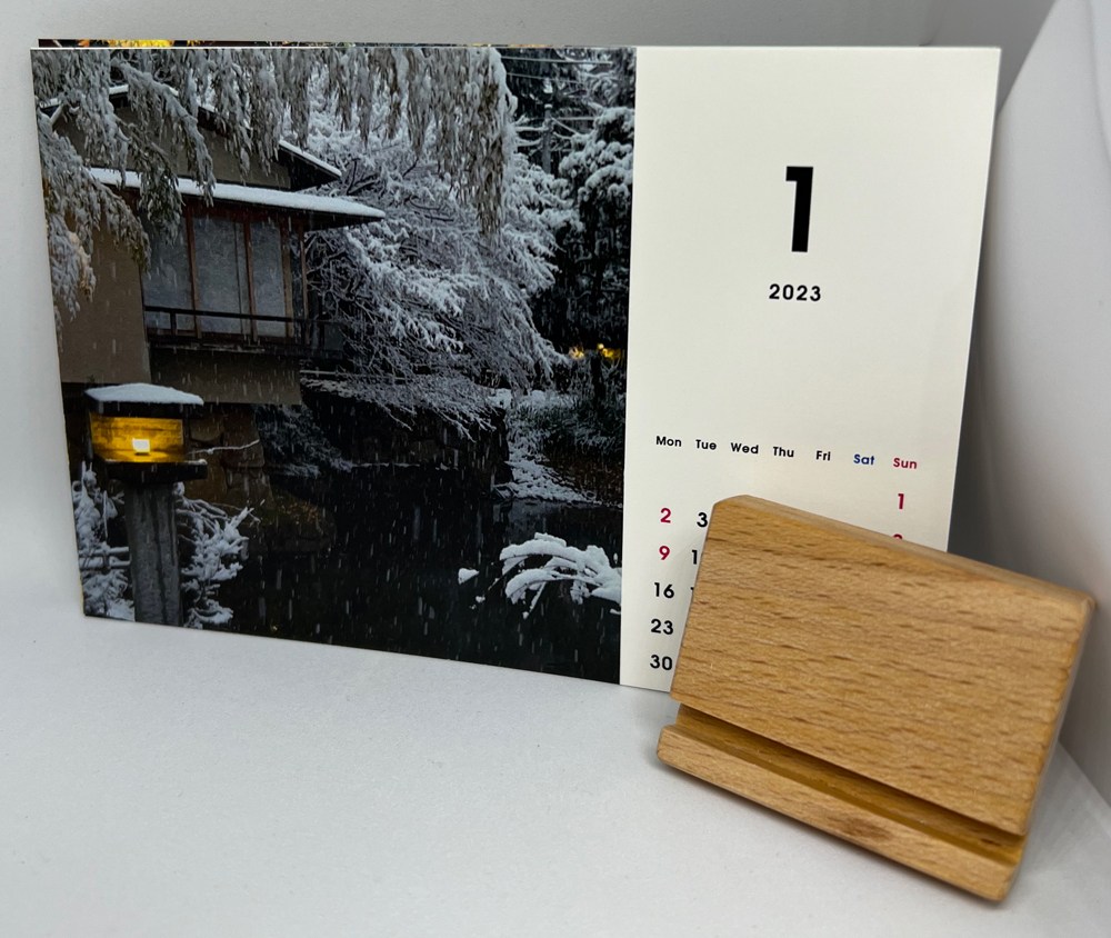 Every calendar comes with a hand-made wooden stand. Both, the wooden stand and the calendar are made in Japan.